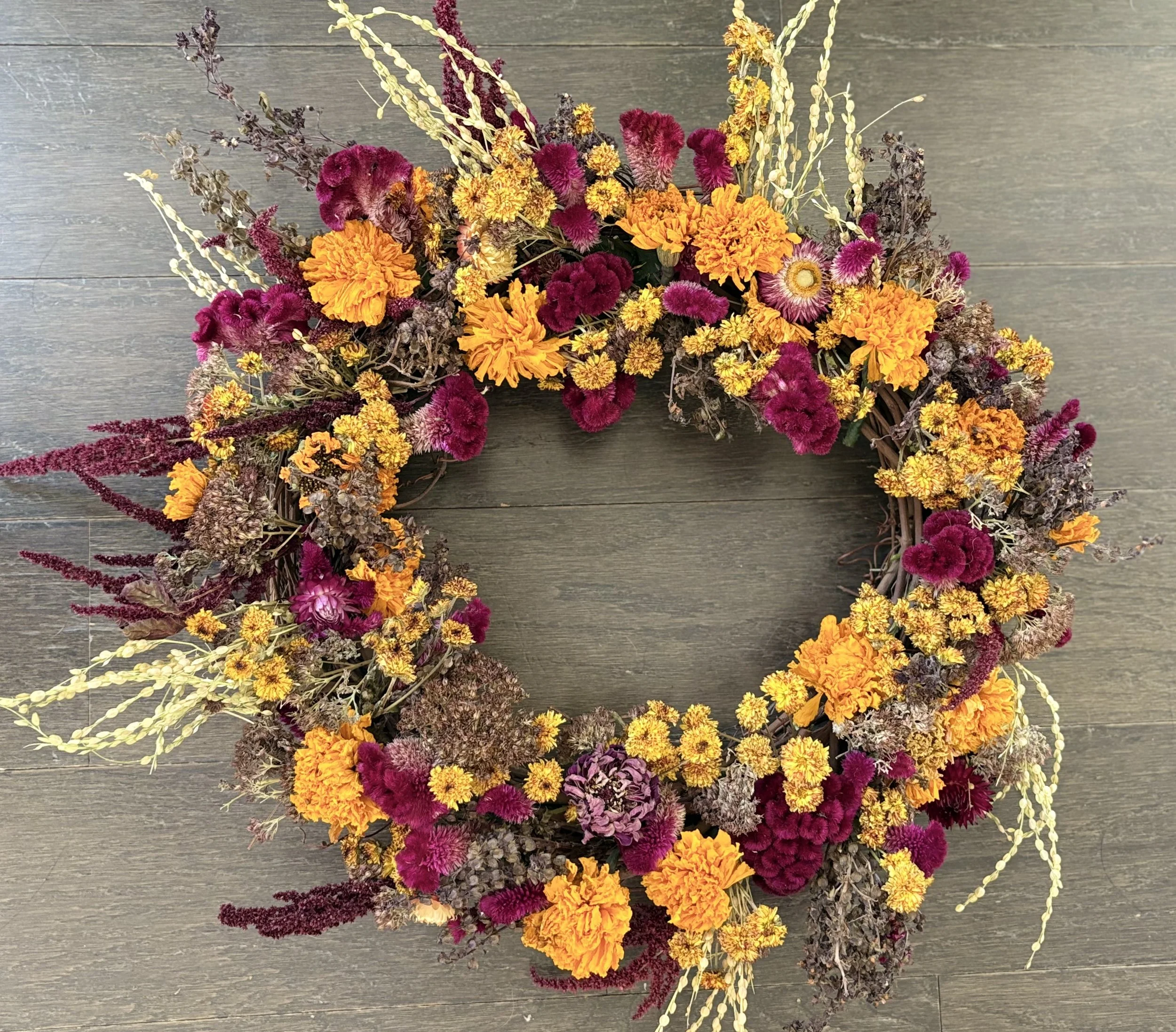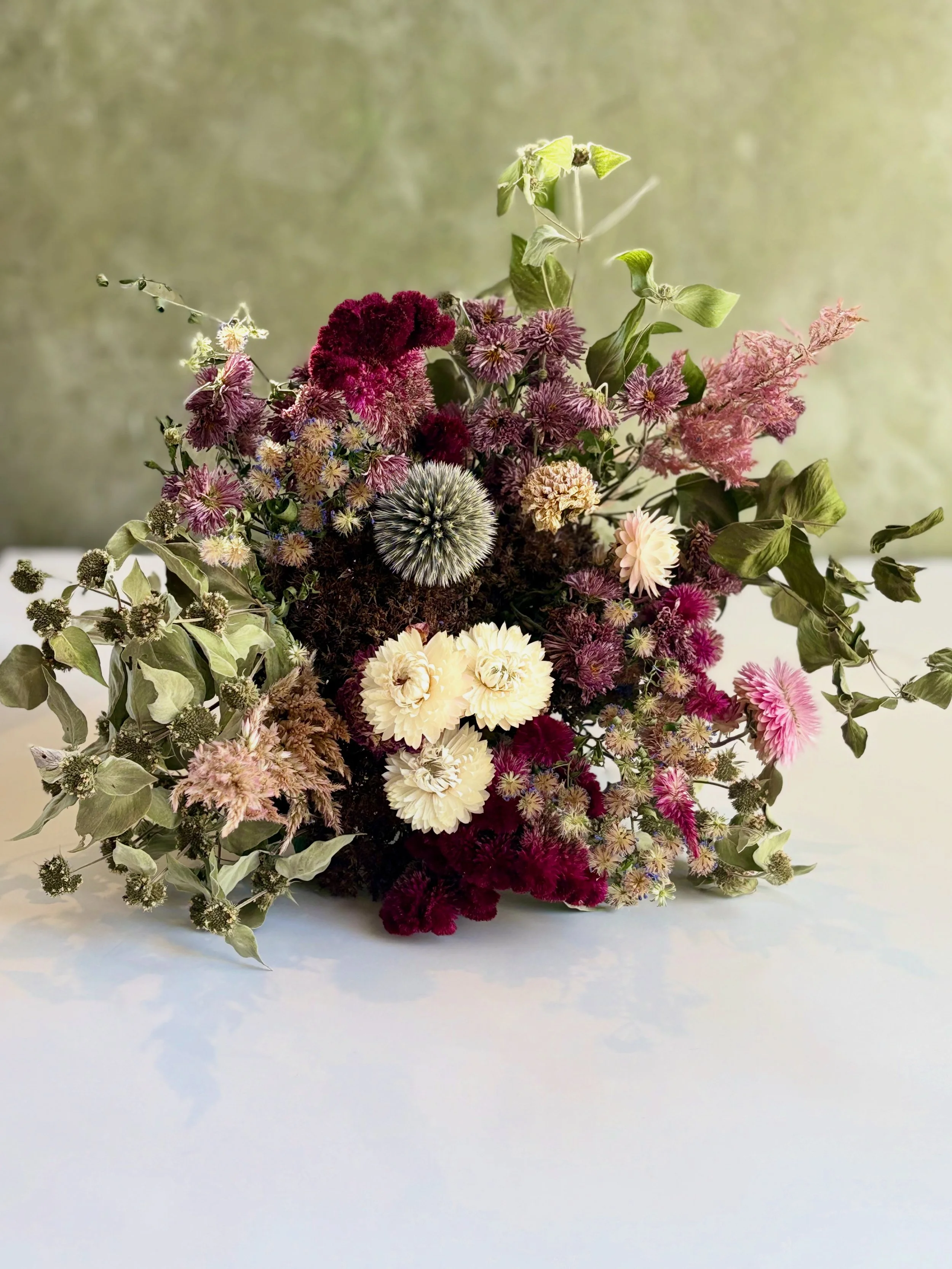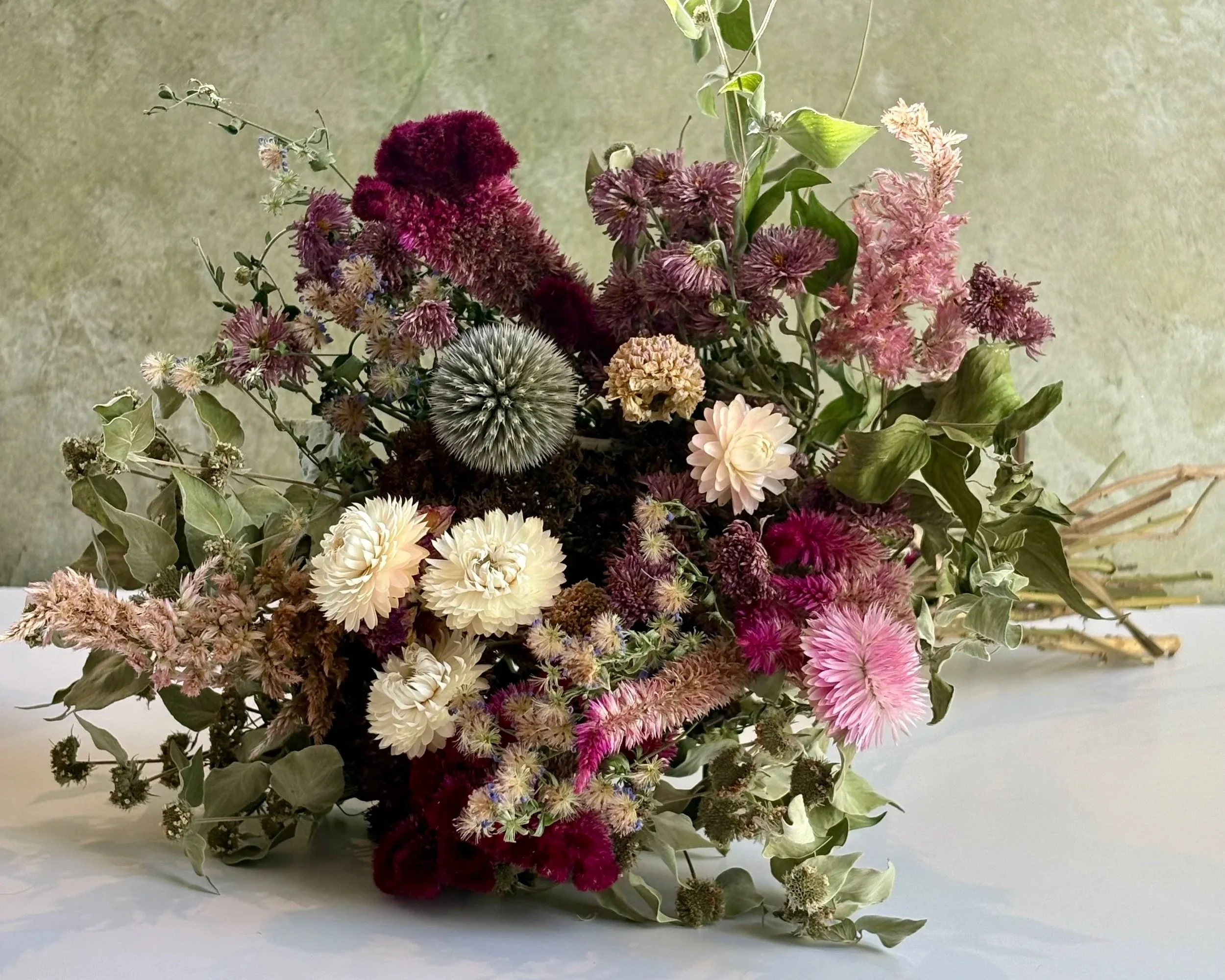 Categories: All Wreaths Dried Flowers Planters Vases All / Quick View Dried Flower Bouquet - Burgundy, White, and Mint $35.99 Quick View Dried Flower Wreath - Burgundy & Orange $65.00